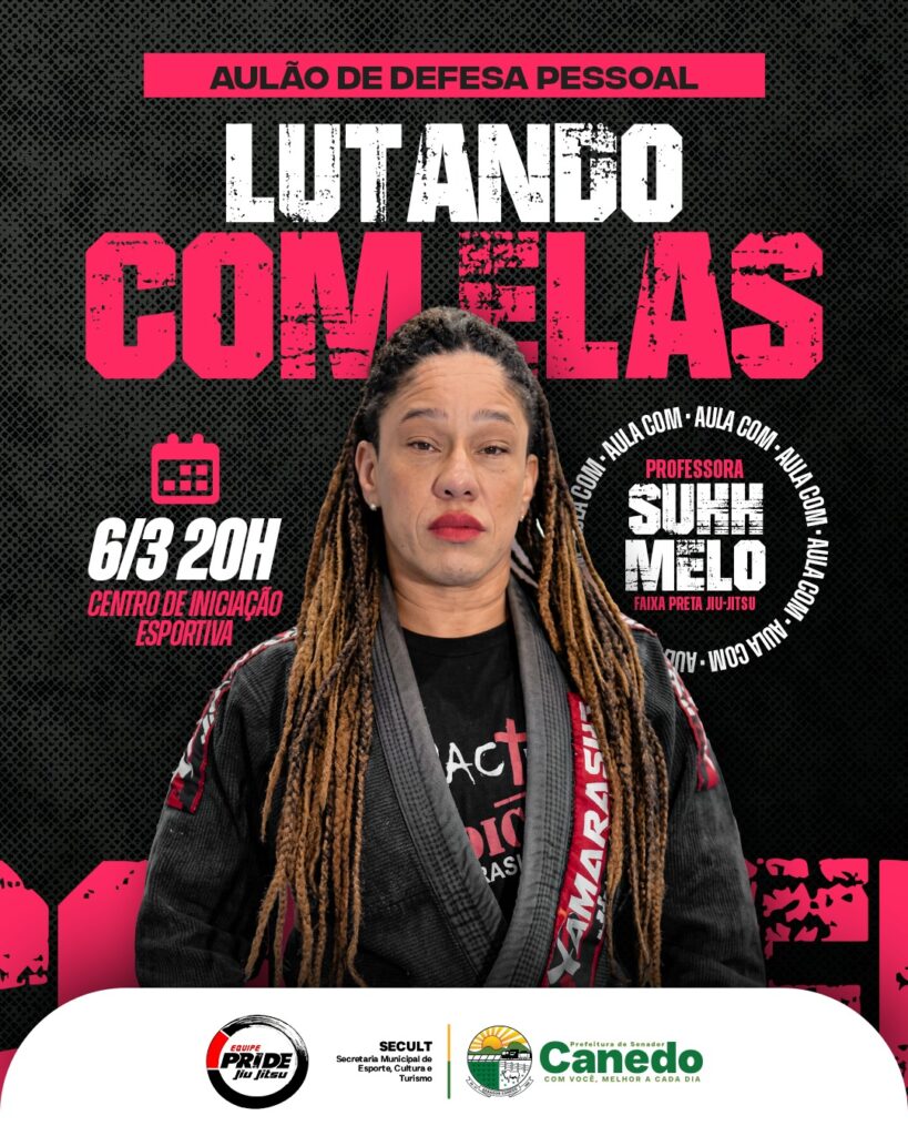 A Prefeitura de Senador Canedo, por meio da Secretaria Municipal de Esporte, Cultura e Turismo (SECULT), promove o aulão de defesa pessoal “Lutando Como Elas”, voltado ao público feminino. A atividade será realizada no dia 6 de março, às 20h, no Centro de Iniciação Esportiva.