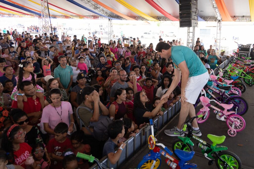 Evento idealizado pelo prefeito Leandro Vilela e pela primeira-dama Lana Bezerra teve show da Patrulha Canina, brinquedos infláveis, oficinas e sorteio de 140 bicicletas para crianças de todas as idades