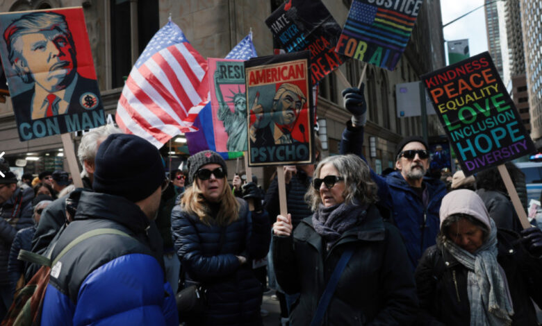 Multidão sai às ruas de Nova York contra governo de Donald Trump